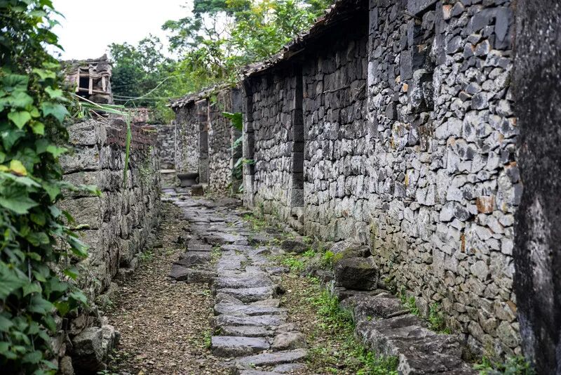 用火山岩铺设而成的村道,不规则中尽显古朴,给人一种时光倒流的遐想。